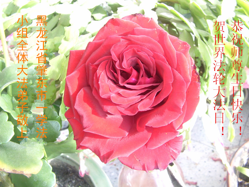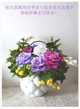 哈爾濱南崗區一學法小組恭祝師尊生日快樂!敬獻手工製作的絲網花,弟子們會整體配合,共同提高,助師正法,抓緊救人!