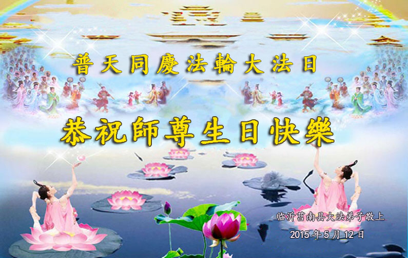 山東臨沂市大法弟子恭祝五一三世界法輪大法日暨師尊華誕!