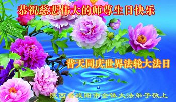 陝西省咸陽市全體大法弟子敬祝慈悲偉大的師尊生日快樂!恭賀5.13世界法輪大法日!