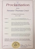 紐約州第一選區參議員Kenneth P. LaValle及其頒發的褒獎紐約州第三選區參議員Thomas D. Croci及其頒發的褒獎紐約州第四選區參議員Philip M.Boyle及其頒發的褒獎紐約州第九選區參議員Dean G. Skelos及其頒發的褒獎紐約州第十九選區參議員John L. Sampson及其頒發的褒獎紐約州第三十選區參議員Bill Perkins及其頒發的褒獎
