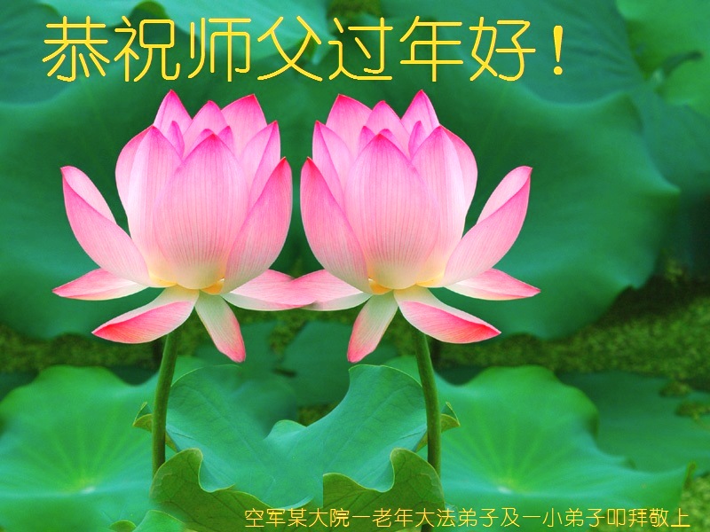 空軍某大院一老年大法弟子及一小弟子恭祝師父過年好!