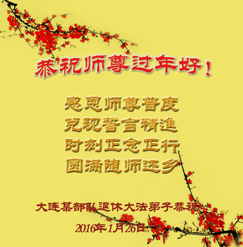 遼寧省大連某部隊退休大法弟子恭祝師尊過年好!