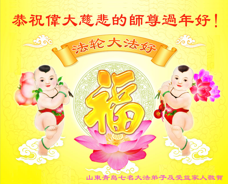 山東青島七名大法弟子及受益家人恭祝偉大慈悲的師尊過年好!