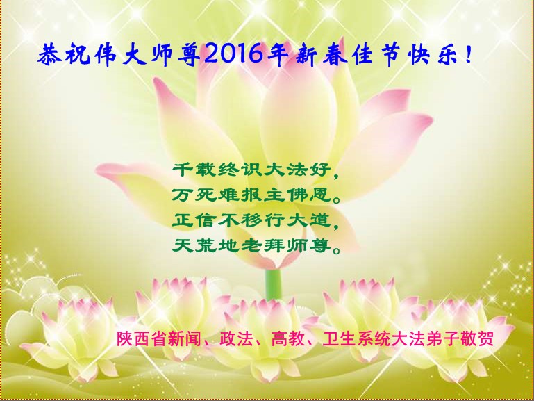 陝西省新聞、政法、高教、衛生系統大法弟子恭賀偉大師尊2016年新春快樂!