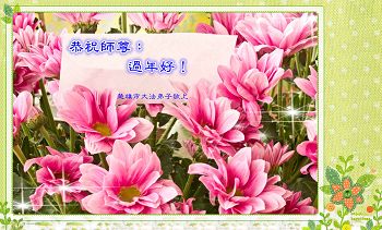 也代表家庭中明真相支持大法的3位親人向師尊問好!祝偉大的師尊新年好!新年到來之際,弟子向師尊送去最真摯的問候,弟子深深的感謝師尊的慈悲呵護和加持,使弟子闖過了一關關。今天弟子也要自豪的對您說:您的弟子已經逐漸成熟,在今後的日子裏我會嚴格實修,真正修成無私無我先他後我的正覺,使師尊少一些操心,多一些安慰。