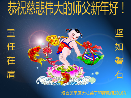 「師父辛苦了!師父新年好!祝師父新年快樂!」我們河南省焦作市全體大法弟子向偉大的師父問好,叩首拜年!