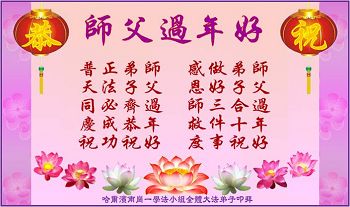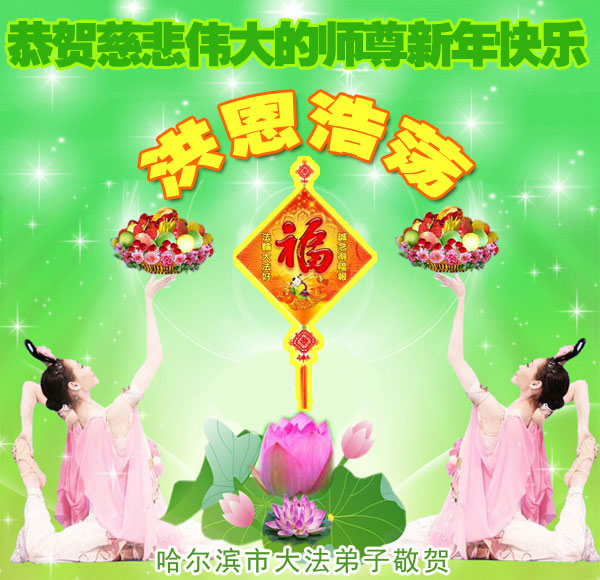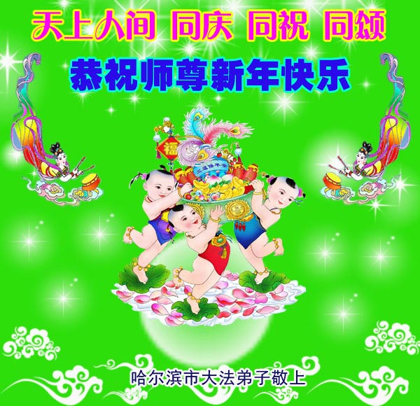 哈爾濱大法弟子恭祝偉大的師尊黃曆新年快樂!不爭氣的弟子會加倍努力做好三件事,完成歷史使命!