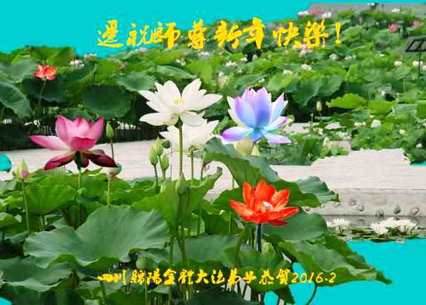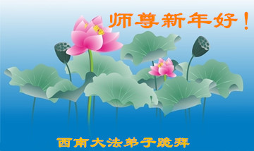 偉大的師尊您好:我們樺南全體大法弟子恭祝師尊新年快樂!劉氏一家和尹氏一家的大法弟子恭祝師尊新年快樂!新的一年更加精進,走好師尊安排的路,圓滿隨師還。