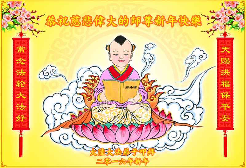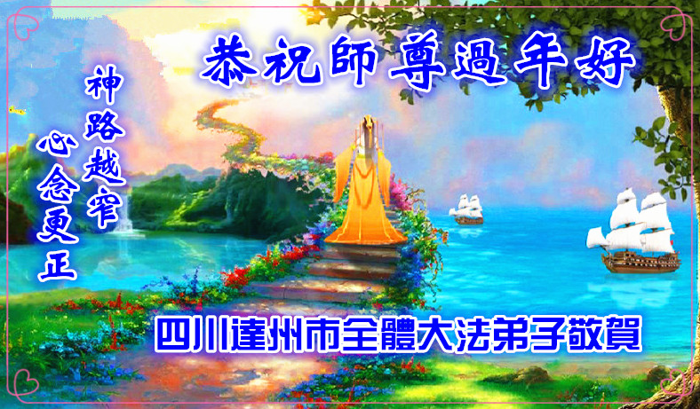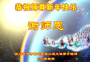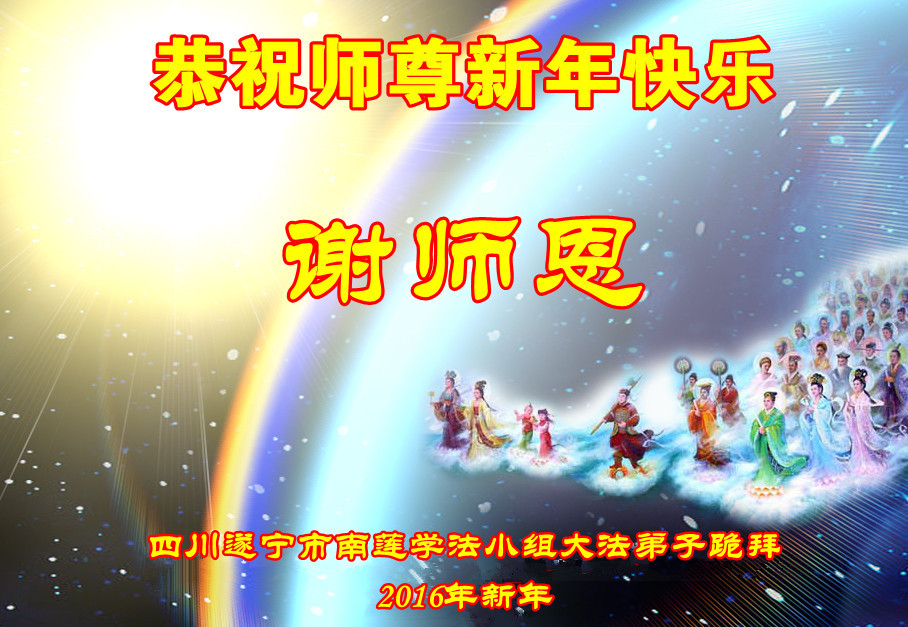我們無限感恩師尊的慈悲救度,我們一定勇猛精進,修煉如初,做好三件事,多救人,快救人,讓師尊少一份操勞,多一份欣慰!我們衷心問候師尊新年好!恭祝師尊新年快樂!