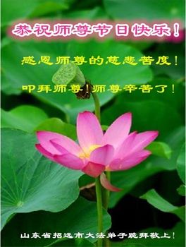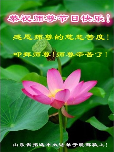 師父救度眾生辛苦了!在這個紅塵末世,弟子有幸得到師尊的慈悲救度,同時又賜予了弟子助師正法,救度眾生的神聖使命,弟子心中的幸福和自豪無以言表!弟子一定珍惜這千載難逢的珍貴機緣,讓那些被邪黨迷惑的生命,明白真相,找回真正的自我,也得到師尊的慈悲救度!