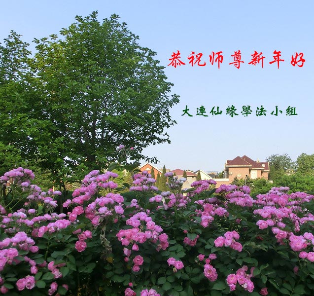 遼寧省大連金州光明街道一學法小組大法弟子恭祝師尊新年快樂!