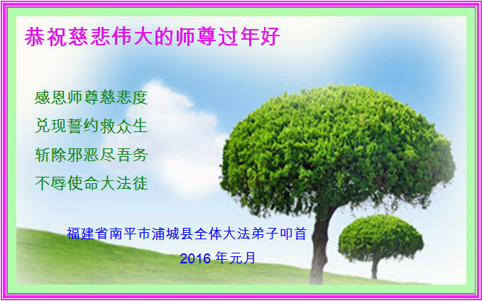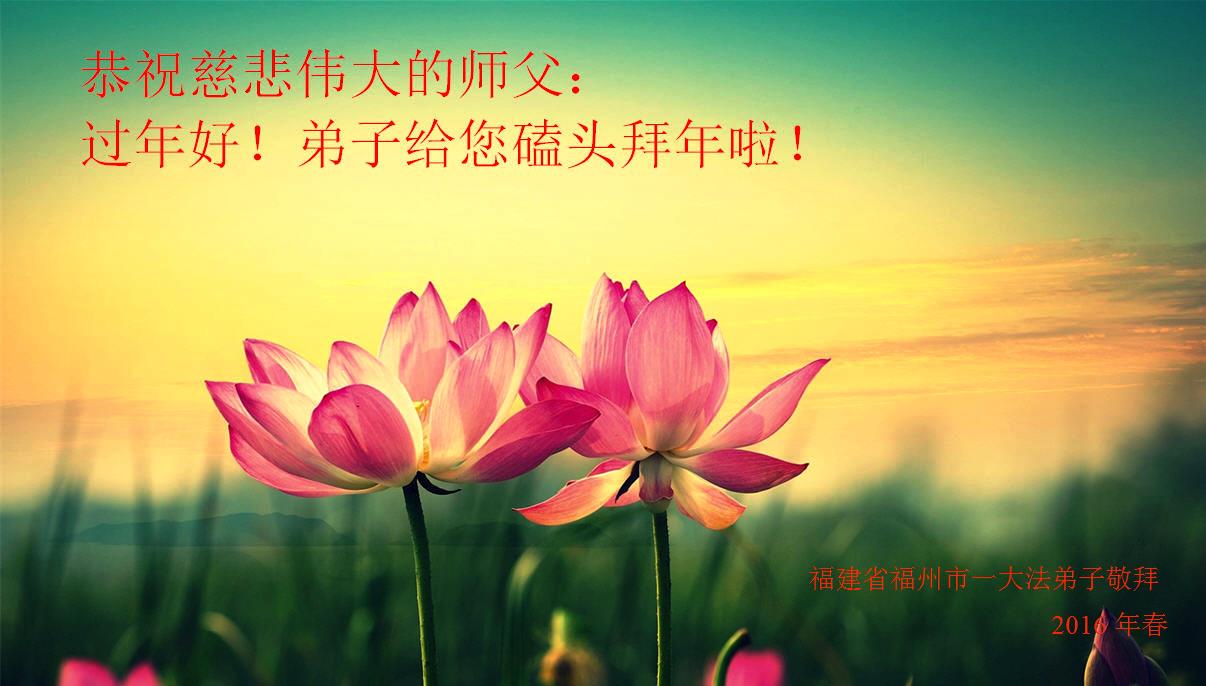 感恩師尊的慈悲苦度!在新的一年弟子要更加勇猛精進,並希望世人都能明白法輪大法好。