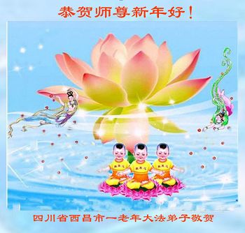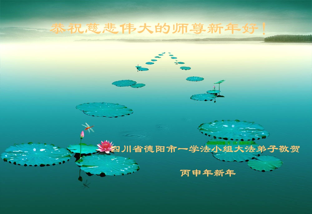 四川省德陽市一學法小組大法弟子恭祝慈悲偉大的師尊新年好!