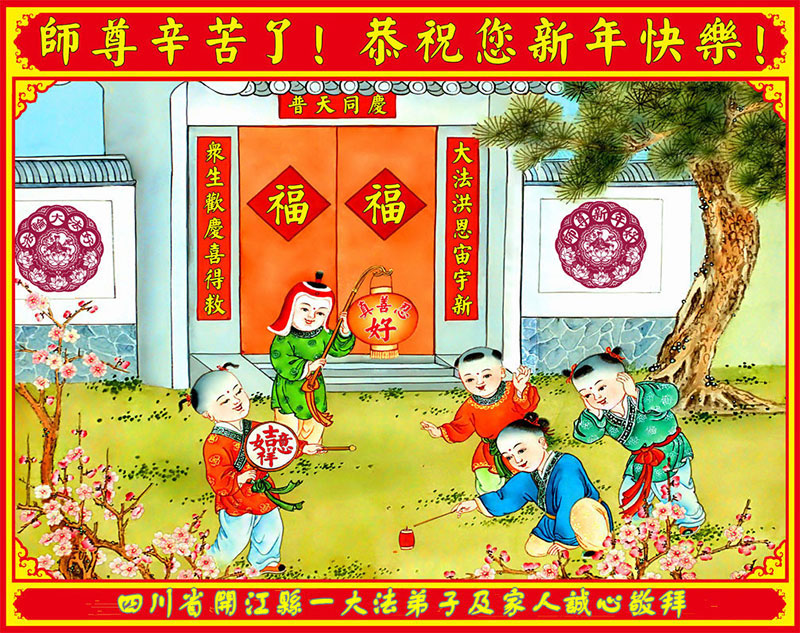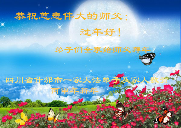 四川省(德陽)什邡市一家大法弟子及家人恭祝慈悲偉大的師父過年好!