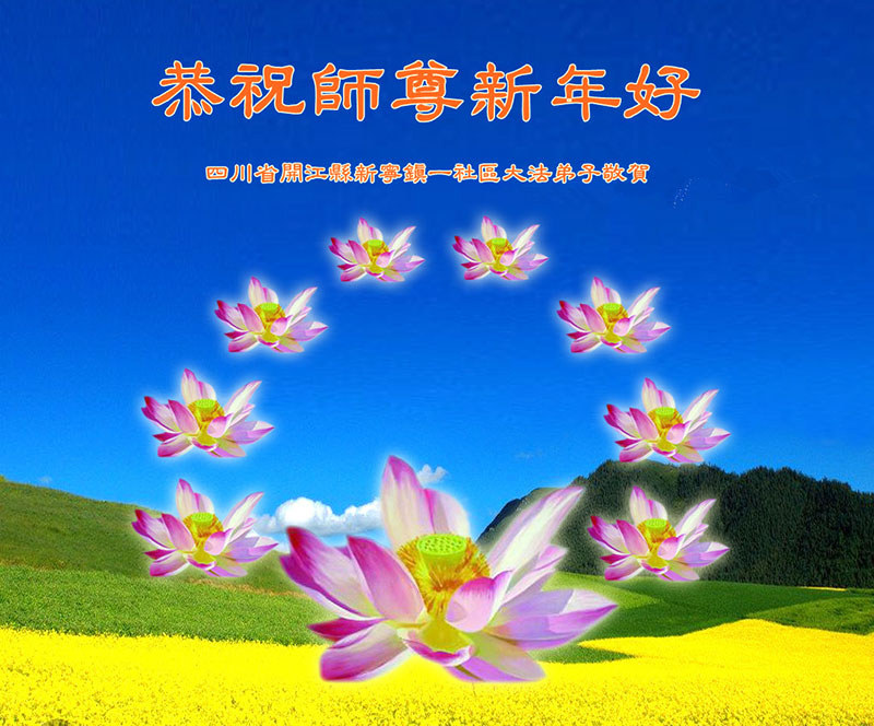 四川省達州市開江縣新寧鎮一社區大法弟子恭祝師尊新年好!