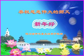 四川省達州市開江縣一學法小組大法弟子敬祝慈悲偉大的師父新年快樂!