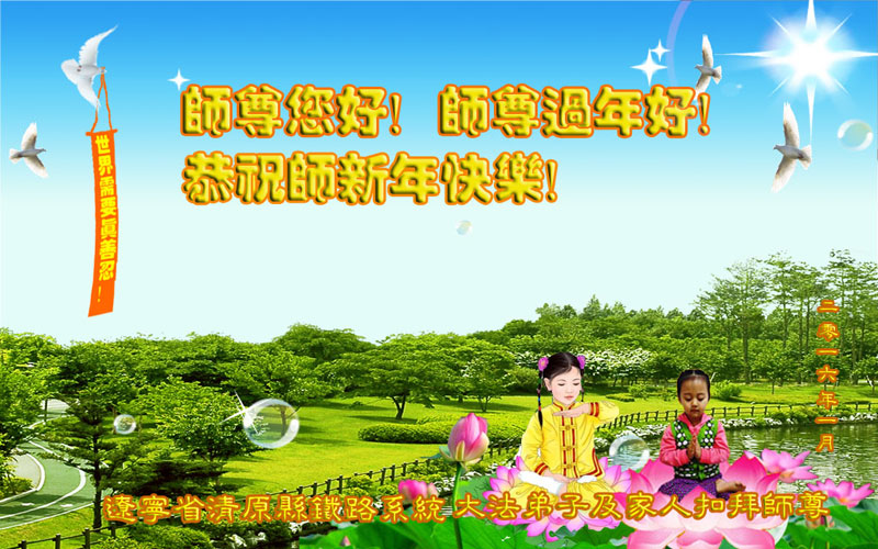 遼寧省撫順市清原縣鐵路系統大法弟子及全家恭祝慈悲偉大的師尊過年好!