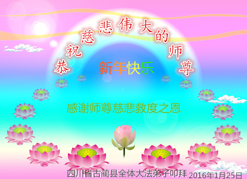 四川省瀘州市古藺縣全體大法弟子恭祝慈悲偉大師尊新年快樂!