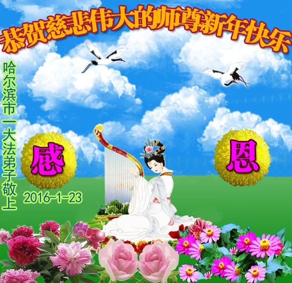 黑龍江省哈爾濱一大法弟子恭祝慈悲偉大的師尊新年快樂!