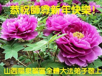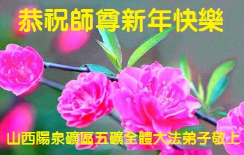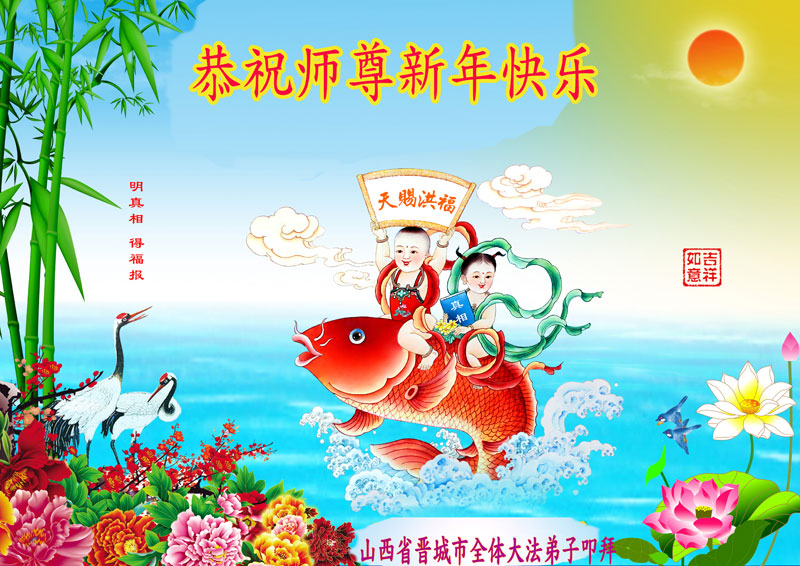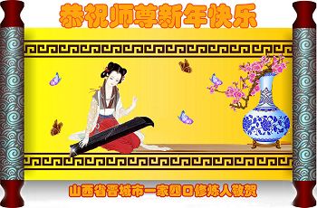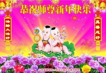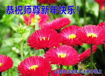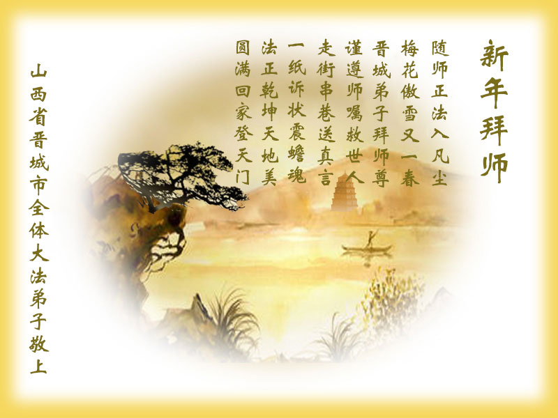 在新年到來之際,我們晉城市大法弟子向師父致以節日的問候!感謝師父的慈悲苦度!在新的一年裏,我們要更加精進,繼續做好三件事,多多救人,助師正法完成使命,圓滿隨師還。全體大法弟子合十叩拜