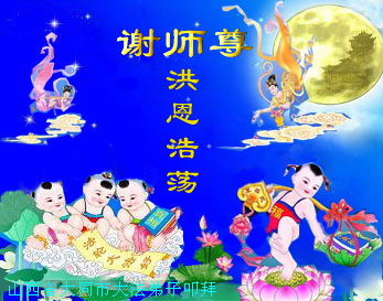 師尊您好!師父您辛苦了!每逢佳節倍思親,值此新年佳節來臨之際,弟子們更加感念師尊。隨師正法一路走來,我們時時處處都能感受到師尊的悉心看護和無私賜予,時刻沐浴在您的浩蕩洪恩中,能成為偉大師尊的弟子是我們最大的幸福和生命中至高無上的榮耀。無限感恩師尊的慈悲救度和無微不至的呵護!弟子一定要謹遵師囑,保持「修煉如初」,精進實修,學好法,向內找,放下一切人心和執著,純純淨淨的修好自己,協調配合整體,更加努力、用心的做好「三件事」,更好的助師正法,救度更多的眾生,圓滿隨師還。圓容師尊所要的就是弟子最大的責任和本份,惟願師尊笑就是弟子最美好的心願。再次恭祝偉大的師尊新年快樂!謝謝師父!山西太原大法弟子合十叩拜!