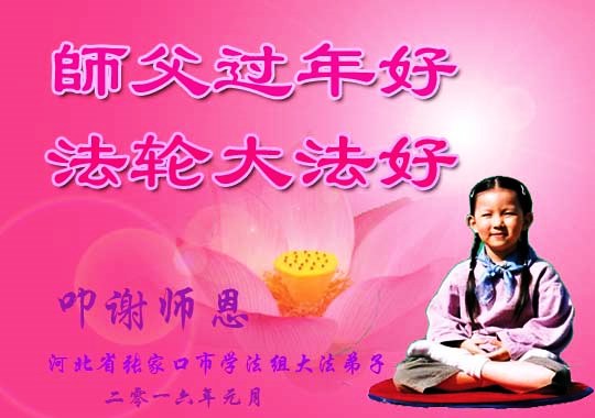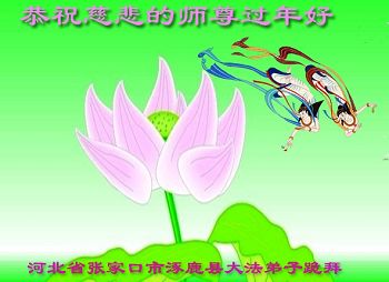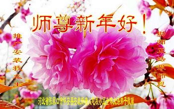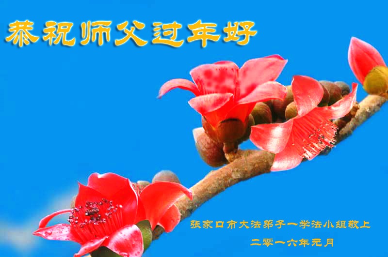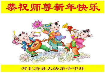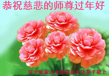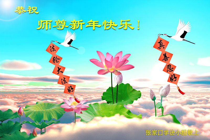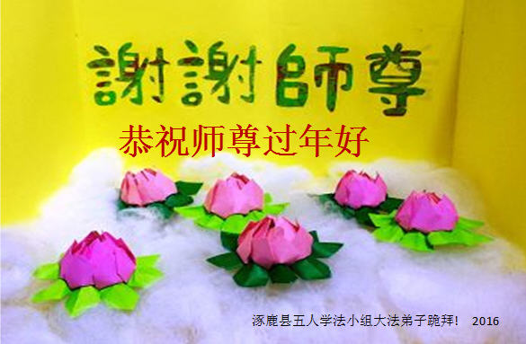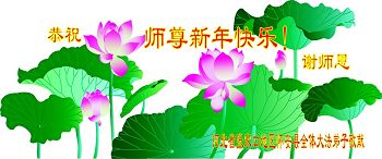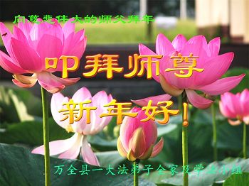 學法小組4名大法弟子向慈悲偉大的師父拜大年, 師父好! 師父辛苦了!恭祝師父大年快樂!