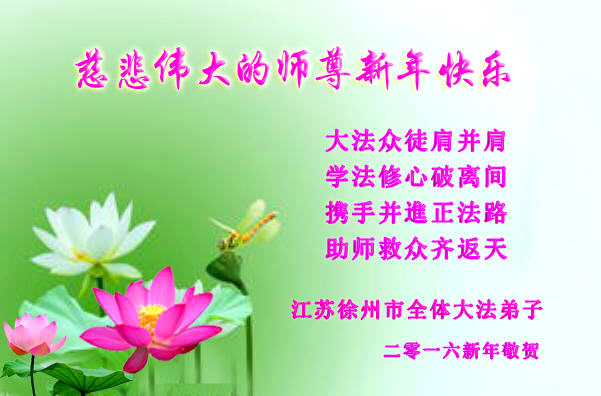 揚州地區大法弟子恭祝慈悲偉大的師尊新年快樂!弟子一定聽從師尊的諄諄教誨,完成自己的使命,圓滿隨師還。