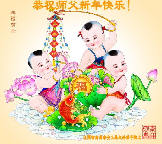 江西省宜春地區一大法弟子全家向慈悲偉大的師尊拜年!恭祝師尊新年快樂!
