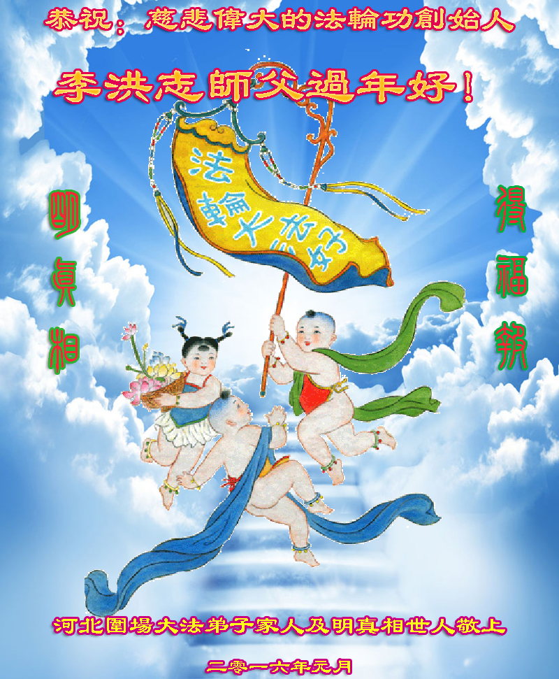 恭祝師尊二零一六年新年快樂!正法必成。弟子一定緊跟師父,堅持修煉,圓滿隨師還。