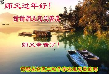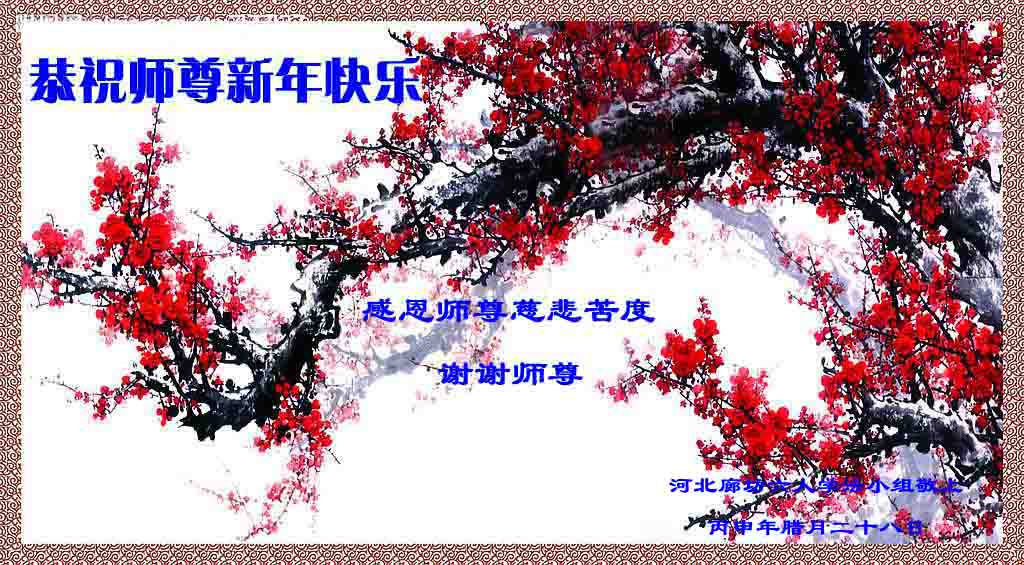 河北成安一人六人學法小組大法弟子誠心恭祝師父新年快樂!在新的一年裏,我們更加精進,跟上正法進程,絕不落下讓師父失望。