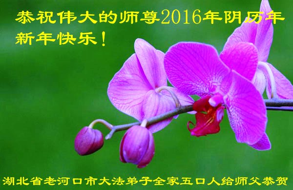 每逢佳節倍思親,襄陽大法弟子萬分想念慈悲偉大的師尊。千思萬念彙集一句話,感謝師尊慈悲苦度!十幾年的修煉歷程,使弟子深深的知道,如果沒有師父的苦度,就沒有弟子的今天。也沒有世人的今天!是師尊用自己的承受呵護著弟子,在劫難中才能走到今天。襄陽市全體弟子在新的一年裏會珍惜時間,努力學好法,向內找,整體配合好,整體提高,做好三件事,緊跟師父正法進程,完成救人使命,跟師父回家。