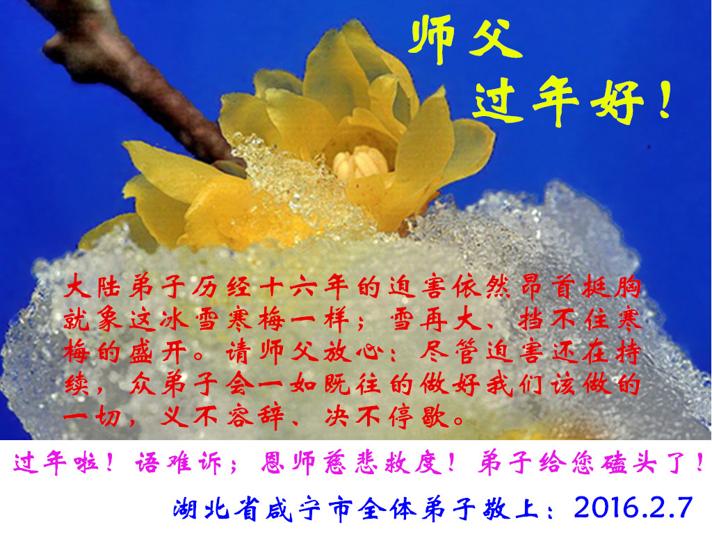 值此中國傳統新年來臨之際,我們黃石全體大法弟子敬祝偉大慈悲師父新年快樂!