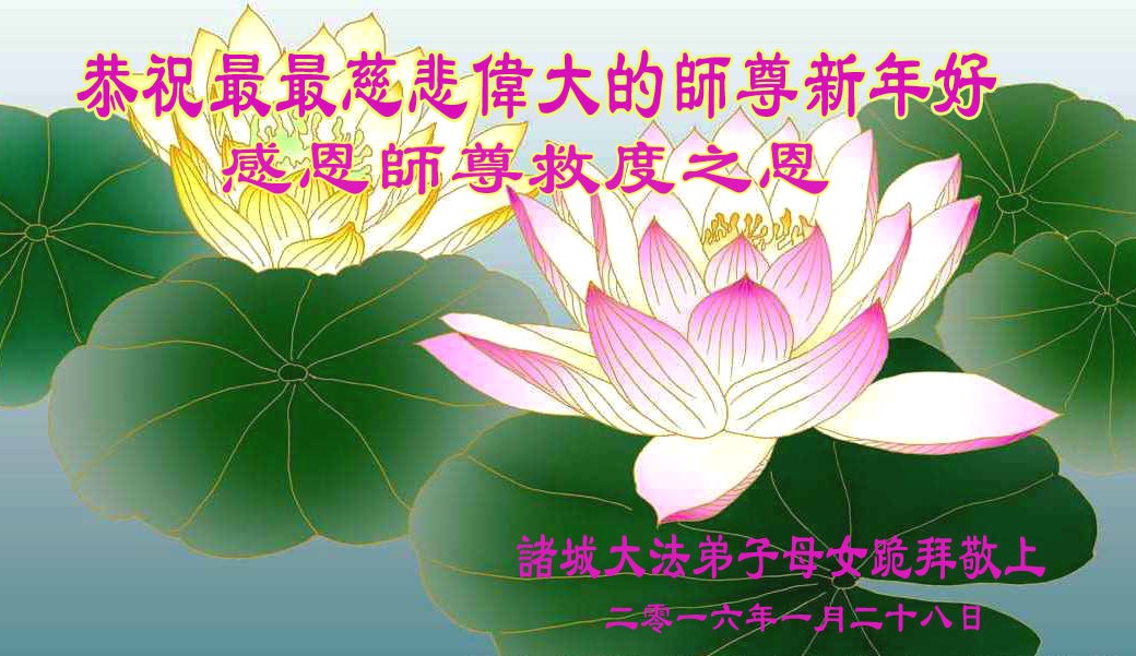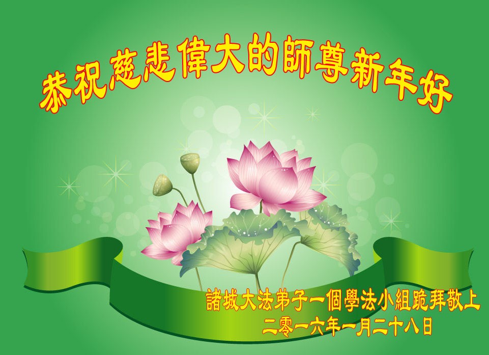 辭舊迎新年,大法在弘傳。大法弟子在修煉中辭去了二零一五年,我們又迎來了二零一六年。在新年來臨之時,首先恭祝我們慈悲偉大的師尊新年好,新年快樂!