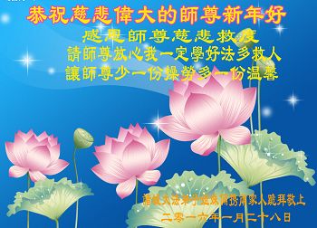 藉此新春佳節之機,弟子代表全家向慈悲偉大的師父拜年!師父新年好! 弟子無法回報師父的慈悲救度之恩,唯有做好「三件事」,去迎接弟子與恩師團聚的那一天。