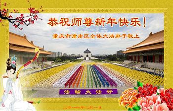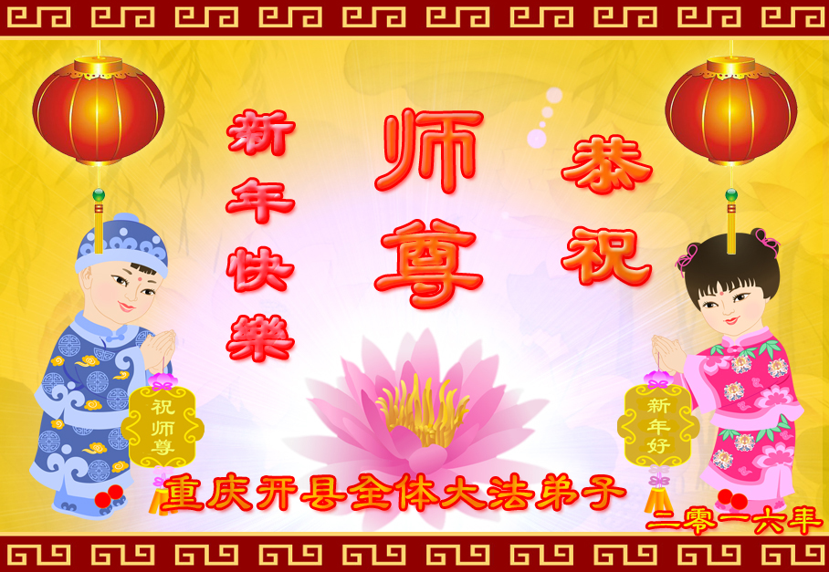 在二零一六年新年來臨之際,弟子在重慶給師父拜年了!師父啊,在這正法最後時刻,我們一定牢記師尊教誨,更加努力做好三件事,與同修共同精進,修好自己,多救眾生,兌現我們的神聖誓約,感謝師尊的慈悲救度。