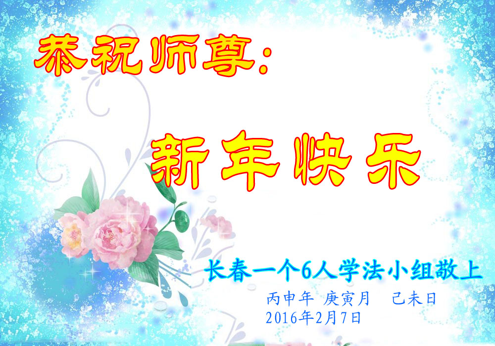 吉林省長春一6人學法小組大法弟子恭祝慈悲偉大的師父新年快樂!
