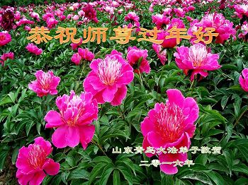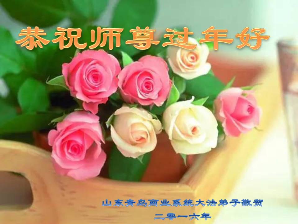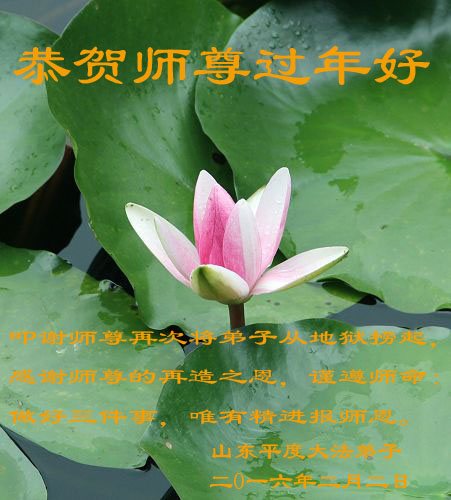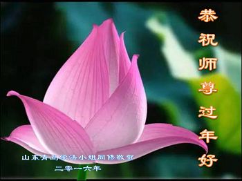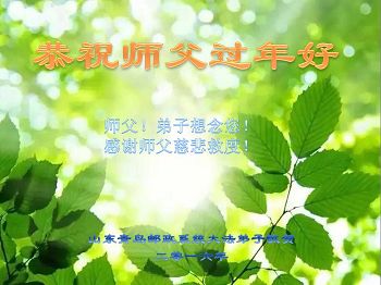 山東青島膠州一老年學法組大法弟子在新年來臨之際特別委託另一學法組弟子給師父送去新年問候:恭祝師尊新年快樂!