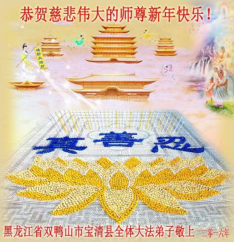 在這新年來臨之際,伊春市金山屯區全體大法弟子們向我們至尊至敬至高無上的師尊叩拜:師尊您好,師尊您好!