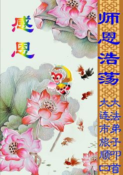 感恩師尊時刻呵護著弟子能夠得法與證實法,正法已到最後,弟子一定珍惜最後的時間做好三件事,多學法、向內找,正念正行,多救人,讓師尊放心,圓滿隨師還。