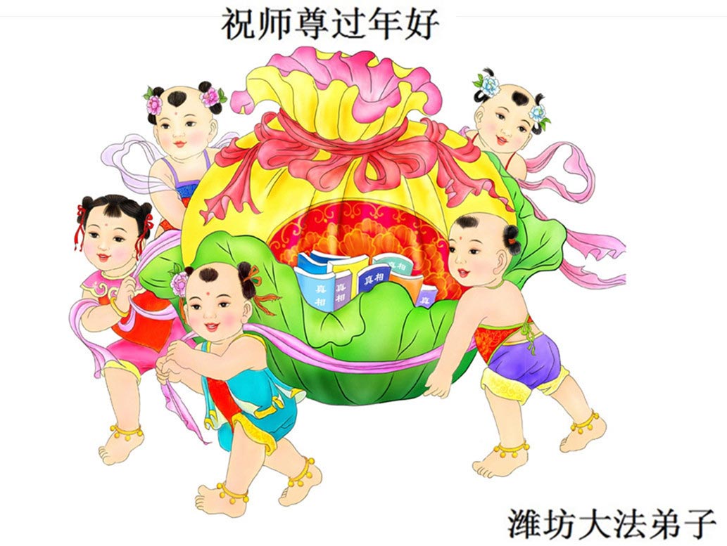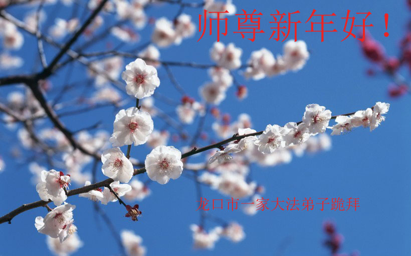 山東省煙台市龍口市一家大法弟子向慈悲偉大的師尊拜年!
