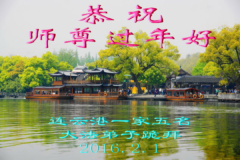 江蘇省連雲港一家五名大法弟子跪拜恭祝慈悲偉大的師尊新年快樂!感謝師尊的救度之恩!