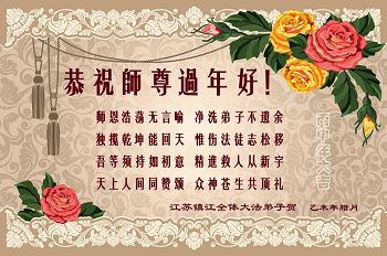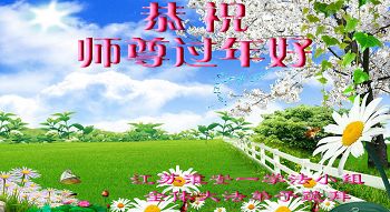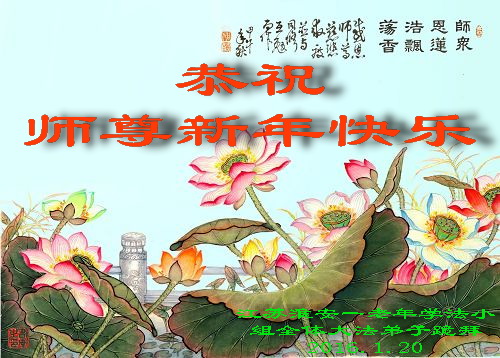 師尊您用巨大的承受延長著正法結束的時間,給還沒有做好的弟子做好的機會;給沒有得救的世人得救的機會。師尊為成就弟子費盡了苦心。在新的一年裏,我們要修好自己,多救人,少讓師尊操心。江蘇鎮江大法弟子向師尊拜年!感謝師尊救度之恩!