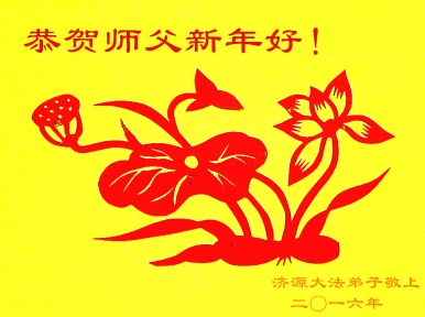正法十六年,億萬關難師尊為弟子承擔,師尊辛苦弟子深知,弟子衷心感謝師尊慈悲救度。丙申新年來臨之際,弟子恭敬誠懇向師尊拜年,祝師尊新年快樂!新的一年裏,弟子必須精進,向內找,修去各種人心,做一個完全同化法的真修、實修合格弟子。用正念神通助師,滅盡一切邪惡,歸正穹宇,救度眾生,圓滿隨師還。師恩無量,弟子必須用心回報,謝師恩,再祝師尊新年好!