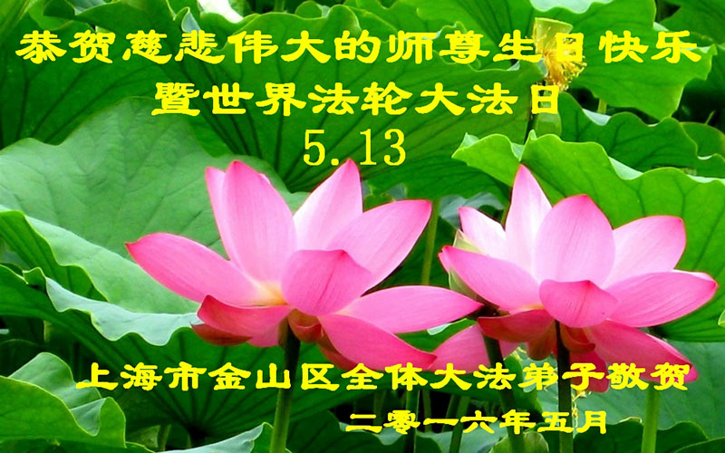上海金山區大法弟子恭祝慈悲偉大的師尊生日快樂!恭賀5.13世界法輪大法日!