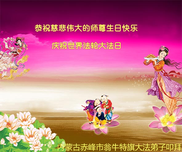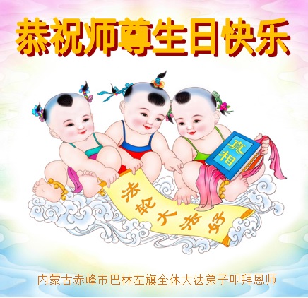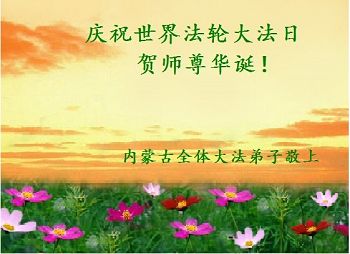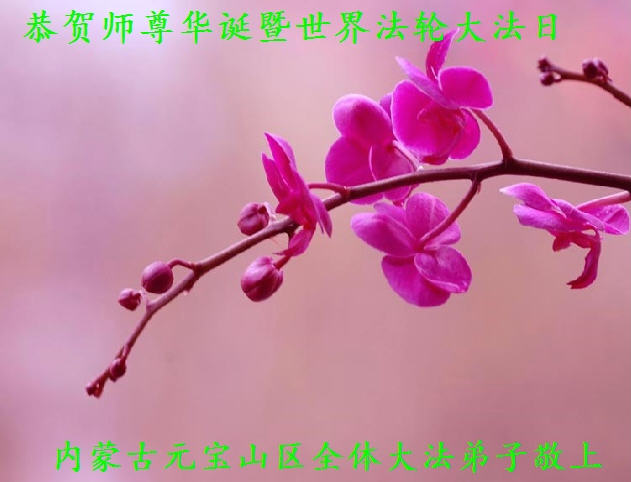 偉大的師尊您好!弟子們謹記您的教誨,整體走過了這十幾年的正法修煉路,有魔難、有坎坷、有失落,有喜悅。在每一次的關難中,我們都真切的感受到師尊的加持和鼓勵。在風風雨雨的錘煉中,我們憑著對大法的正信,在偉大師尊的慈悲呵護下,一步一腳印走到了今天,並且越來越堅定、理智、平穩、成熟,每一步都滲透著師尊的心血與付出。我們傾盡人間語言訴說不盡對偉大師尊的無限感恩!我們整體同修表示:在任何形勢下都嚴格以法為師,不偏離不魯莽,不受外界形勢干擾,不去執著表面好壞,努力做到向內找真正實修,更好的兌現誓約。在世界法輪大法日來臨之際,元寶山區全體大法弟子把對師尊的無限敬仰和感恩,化作賀卡敬上給偉大的師尊。跪拜合十!