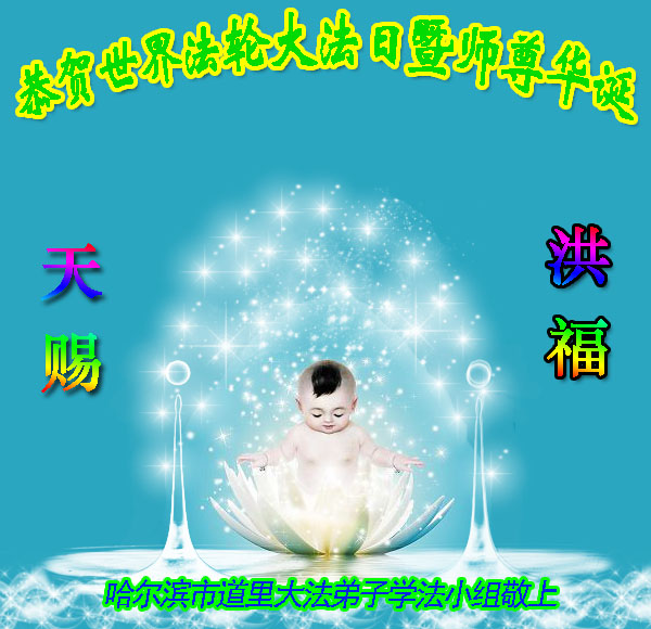 黑龍江省哈爾濱市大法弟子恭祝師尊生日快樂恭賀世界法輪大法日!