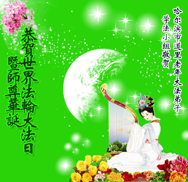 黑龍江哈爾濱大法弟子恭賀世界法輪大法日暨師尊華誕!