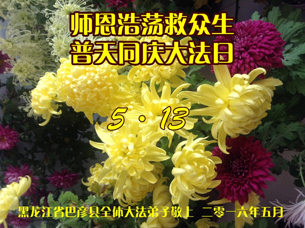黑龍江省哈爾濱市呼蘭區大法弟子恭祝師尊生日快樂!普天同慶5.13世界法輪大法日!