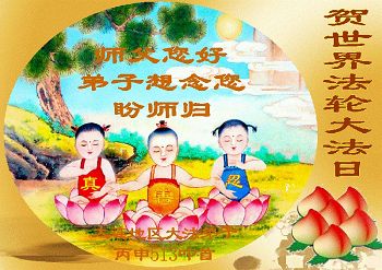 師尊辛苦了!修煉二十多年來,在師尊的教導下,緊跟師尊的正法進程,風風雨雨走到了今天。在正法的最後日子裏,弟子一定用大法的法理,洗刷自己最後的執著及各種人的觀念,修的執著無一漏,完成自己最後的偉大使命,救度更多的眾生,敬請師尊放心。在這偉大的節日裏叩拜師尊。