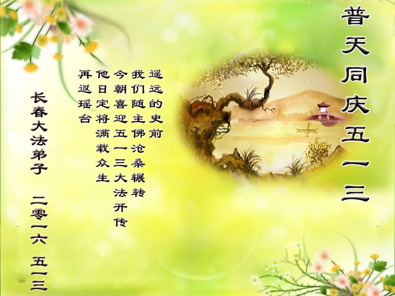 在即將到來的世界法輪大法日,又迎來了師尊的生日。在這雙喜到來的時刻,我們歡呼!我們歌唱!恭祝師父生日快樂!萬事如意!師父您辛苦了!努力做好三件事,絕不辜負師父的慈悲苦度。